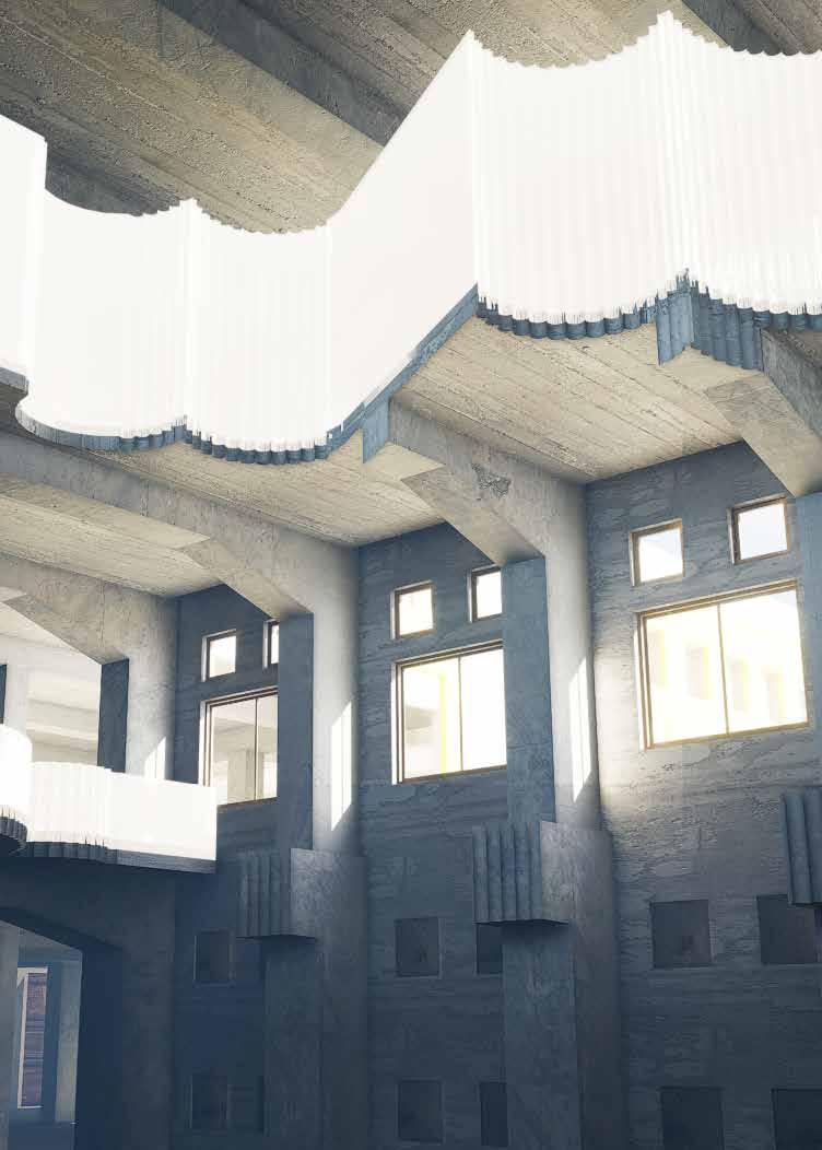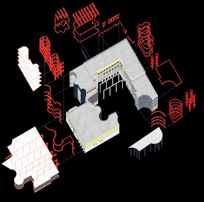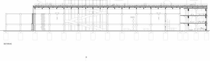 Buildings have been reused throughout history but the current discourse of diverse trends ranging from gleaning the materials to the minutedetailshasledtoasurgerise in reuse projects. A strategy where the masses, the sizes, the rhythm and the form of the existing building could be reassembled in a way to build useful and aesthetical spaces without extensively hampering existing masses and to elevate the programs and usage in and around the site has been the design ideology. The structural columns were the core of the building and the strong core designed for heavy machinery were kept in place. The designstrategydevelopedalonghow columns could help build that