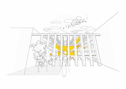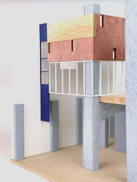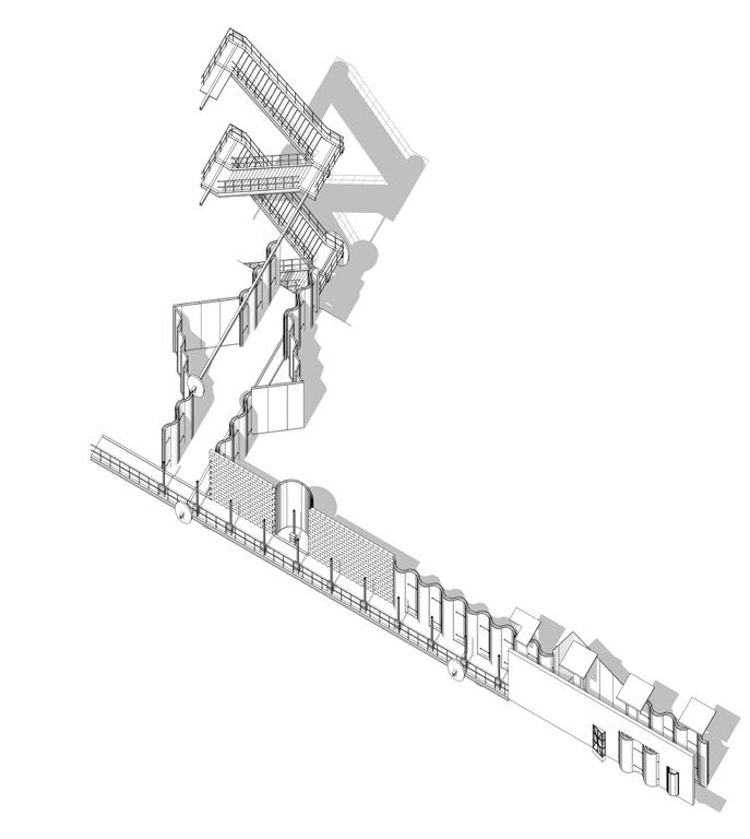 be made out of the material of the old Mack. The project tries to think of an architecture in the form of a pearchain of ‘Ghosts’ or pavilions, that are specific to their use and ideals. Due to limited availability of material and space, their architecture is altered and starts to receive a certain character itself, a personality.