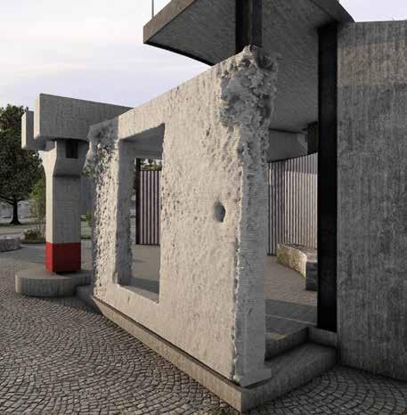 Render image of reuse wall structure, and exhibition space