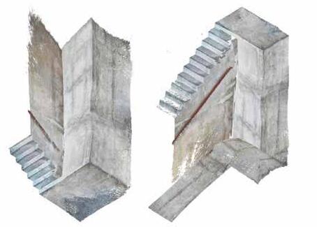 5 The support system is based on pressure transfer at nodes columns, beams and slabs are put together without the aid of casting, welding or connections. The elements look goodandarenotbelievedtohaveweakened load-bearing capacity as the construction is in an indoor environment without the influence of chlorides or chemicals. The Elements have been designed for at least 50 years of use. When reusing loadbearing elements in prefab concrete, the disassembly must be carefully planned as the elements must be lifted out in their entirety, and the remaining structure must retain its stability. Space must also be set aside for intermediate storage in order to be able to process and prepare the elements for assembly on a new building. Some of the elements, especially the columns, are long and will present challenges when lifting and transporting. In case of reuse, will then be beneficial to be able to cut to new lengths before possible transport. The depicted axonometry shows the structural skeleton of the site of Mack Øst The prefabricated elements are unveiling opportunities for further re-use after careful demolition on other sites to re-assemble buildings with spolia element. precast column precast column in situ column & beam in situ column in situ column in situ column in situ column in situ column & beam precast column precast beam precast slab in situ column in situ place beam in situ place slab Mack Øst Bryggeri Størgata, 9008 Tromsø, Norway Axonometry 1:200 / 1x1m 03 - 03 2023 Lab 2 Studio Northern Grounds KTH School of Architecture Philip Einhaus Lena Keßler Daragh Murphy Maximilian Musiol INVENTORY TRAVELLING