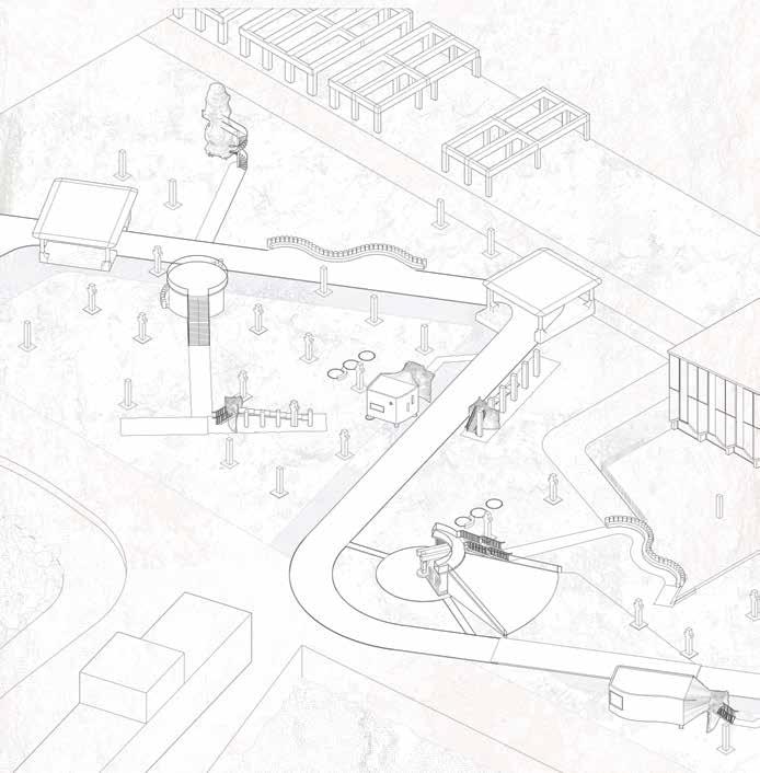 Left: 1:100 Axonometric drawing of Follies