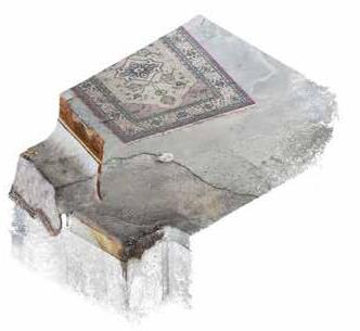 Axonometry showing textures, point clouds and sections of the proposal.