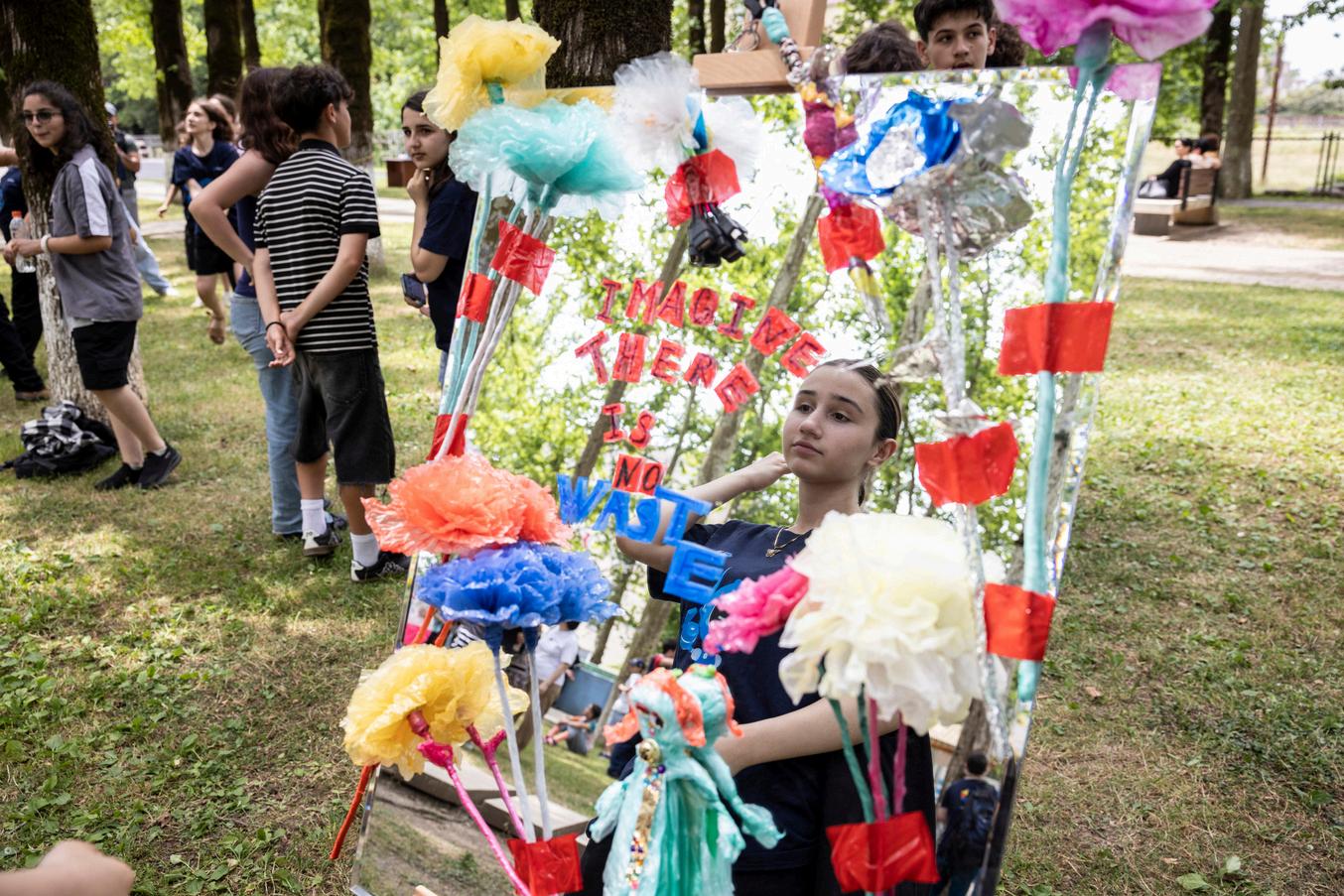 PlasticWatcher’s thought-provoking installation: “Imagine There Is No Waste” As expected, local youngsters took many selfies using the installation mirror.