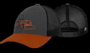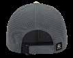 Fit: High profile, structured; Material: Charcoal soft twill and black nylon mesh;