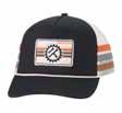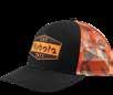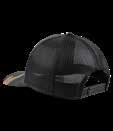 Fit: High profile, structured; Material: Black chino twill and black mesh; Closure: Double row snapback; Embroidered patch.