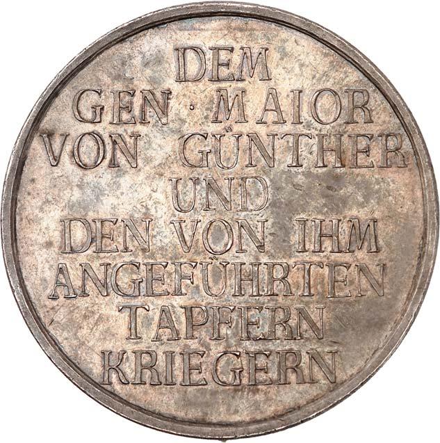 3534 Silbermedaille 1745, unsigniert, von G. W. Kittel, auf die Schlacht bei Sorr am 30. September. Eine aus Wolken kommende Hand legt vier Lorbeerkränze um ein emporgehaltenes Schwert, unten fliehende Soldaten//Neun Zeilen Schrift mit Abschnittslinie und Jahreszahl, umher verzierte Einfassung. 29,11 mm; 8,65 g. F. u. S. 4305; Olding 559 a.Hübsche Patina, sehr schön75,--