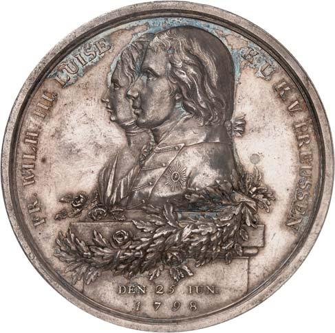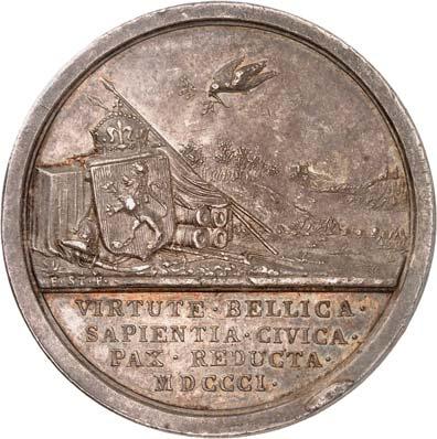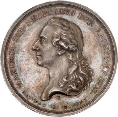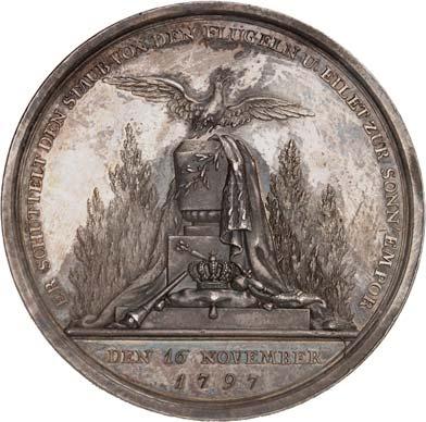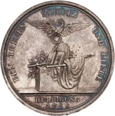 Denkmünze (1797). Silberne Medaille, Durchmesser 38,9 mm, Silber, mit StempelschneiderSignatur "I.N.WIRT.F.", am alten, nicht korrekten Band. BWK1 396.II+100,-Sehr schöne Erhaltung!