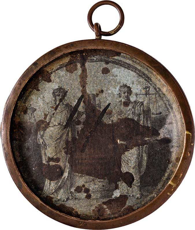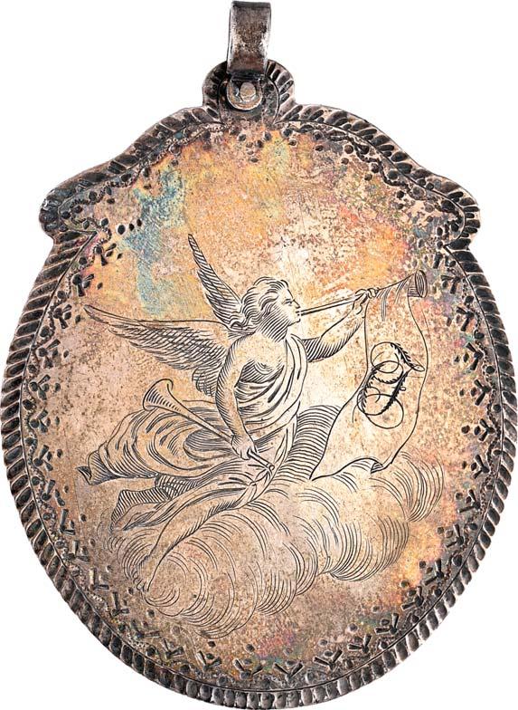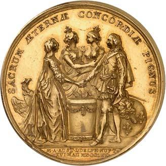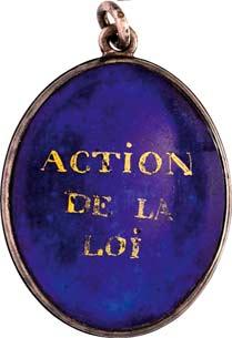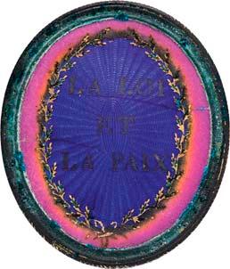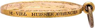 4106 Nicht identifiziertes Medaillon auf die Republik [Medaillon non-identifié de la république]. 47,7 x 28,2 mm, Gold, graviert "mon asile est au sein des Français" [Meine Zuflucht ist an der Brust der Franzosen], ohne Band. Von großer Seltenheit. II500,-Wohl Unikat!