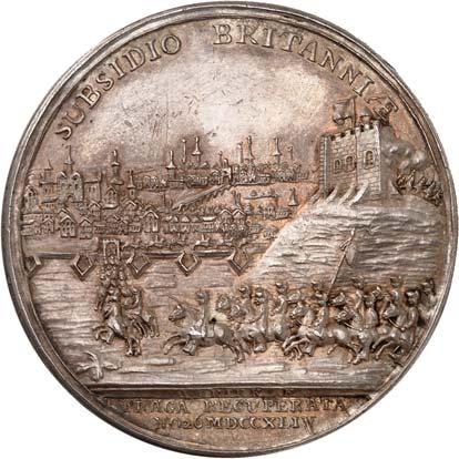 3532 Silbermedaille 1744, von L. H. Barbiez, auf die Einnahme von Prag am 16. September. Büste r.// Darstellung des Angriffs auf Prag. 34,01 mm; 12,50 g. F. u. S. 4291; Olding 550 a. Von großer Seltenheit. Sehr schön +600,-Exemplar der Auktion Westfälische Auktionsgesellschaft 14, Dortmund 1999, Nr. 543.