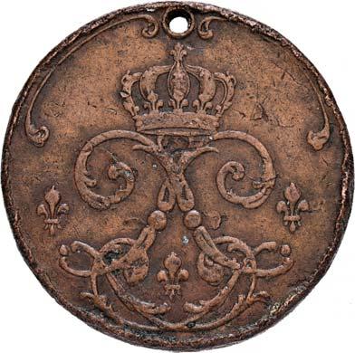 4114 Nicht identifizierte Amts-Dekoration des Distrikts von Arles [Insigne d'office non-identifié du district d'Arles]. Nicht tragbar, Durchmesser 47,2 mm, Buntmetall einseitig ausgeführt.II75,-Der Distrikt von Arles war von 1790 bis 1795 eine Verwaltungseinheit des Départements Bouches-du-Rhône im Südosten Frankreichs.