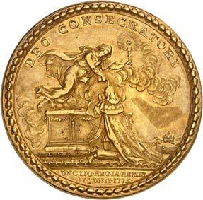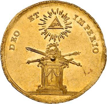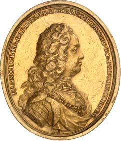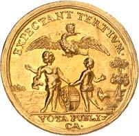 3525Goldmedaille zu 4 Dukaten 1741, unsigniert, von G. W. Kittel, auf den Ausbruch des ersten schlesischen Krieges. Trauernde Silesia neben dem Sarkophag Karls VI., im Hintergrund untergehende Sonne//Schlachtfeld, im Hintergrund brennende Häuser, oben der Planet Mars. 31,97 mm; 13,94 g. F. u. S. 4247 (dort in Silber und Bronze); Olding 901. GOLD. Von großer Seltenheit. Fast vorzüglich3.000,--