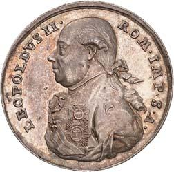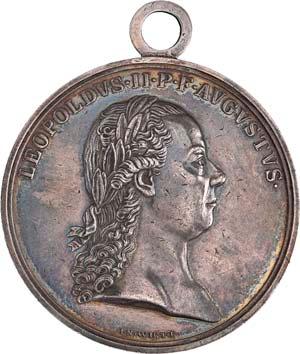 4136 Ehren- und Verdienstmedaille "PIETATE ET CONCORDIA" (1790). Ausgabe mit "LEOPOLDUS II. P. F. AUGUSTUS", Silberne Medaille I. Klasse, Durchmesser 49,2 mm, Silber, mit Stempelschneider-Signatur "I.N.WIRTH.F.F", ohne Band. BWK2 118.II250,--