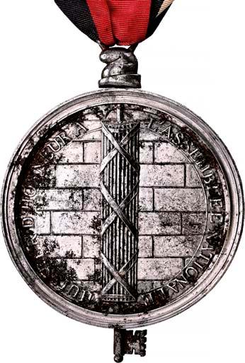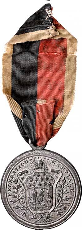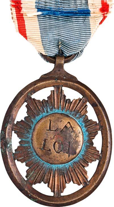 4107 Mitgliedsmedaille der Gesellschaft der Rechte der Menschen und Bürger [Médaille de membre de la société des droits de l'homme et du citoyen]. Durchmesser 27,4 mm, Buntmetall mit Restschwärzung, mit eingeschlagener Mitgliedsnummer "179", ohne Band.II75,--
