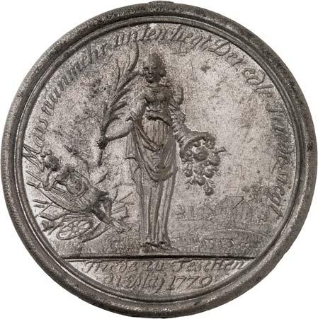 R III100,-Laut Angaben des Einlieferers handelt es sich hierbei um eine Schießpräimen-Medaille für die Grenztruppen aus dem Jahre 1769, was aber nicht durch ein Zitat belegt werden konnte.