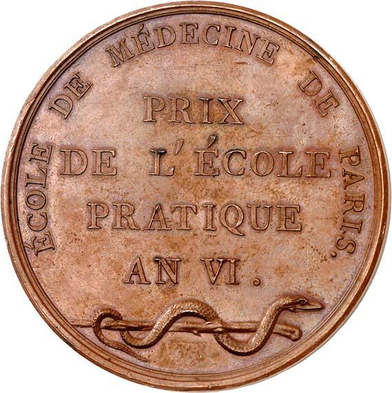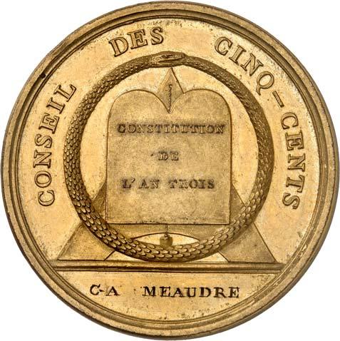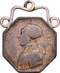 eines Mitglieds des Tribunats (sic!) im Jahr VIII [Insigne d‘office de membre du Tribunat dans l'an VIII] (1800). Nicht tragbar, oktagonal, 47,6 x 38,8 mm, wohl Zinn.II100,-Das Tribunat war eines der beiden Legislativ-Organe der französischen Konsulatsverfassung von 1799.