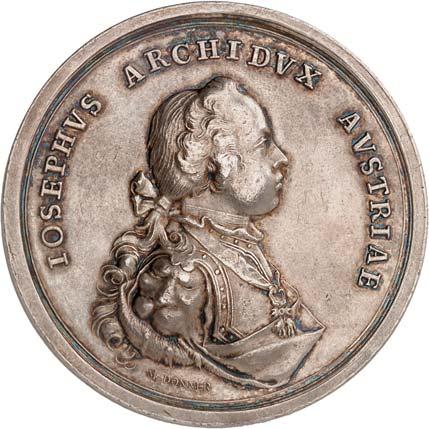 4130 Tapferkeitsmedaille (1789). 1. Modell (mit dem Portrait Josephs II. - 1789-1792), Silberne Tapferkeitsmedaille, Silber, mit Stempelschneider-Signatur "I.N.WIRT.F.", deutliche Tragespuren, ohne Band. BWK 65. II-III 500,--