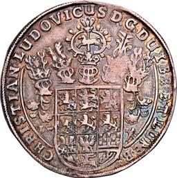 Johann Friedrich, 1665-1679. Multiple taler (Löser) in the weight of 6 Reichstalers 1679, Zellerfeld, on the occasion of his death 28 December, struck in the weight of 6 Reichstalers