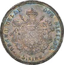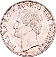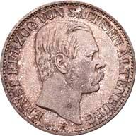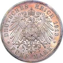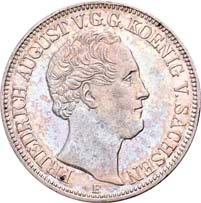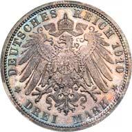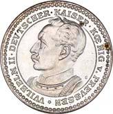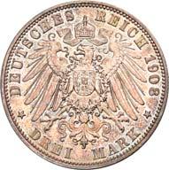 4111 Georg, 1902-1904. 5 Mark 1904, mit Lebensdaten. J. 133.Hübsche Patina, vorzüglich-Stempelglanz150,-4112 Friedrich August III., 1904-1918. 3 Mark 1908. J. 135.Hübsche Patina, polierte Platte (Proof)200,--