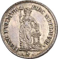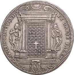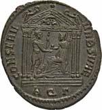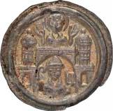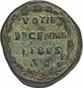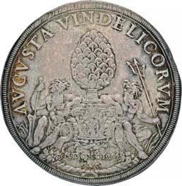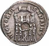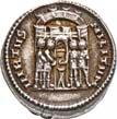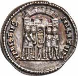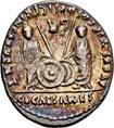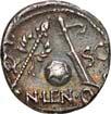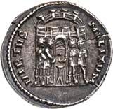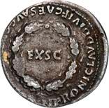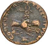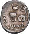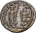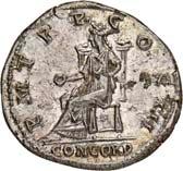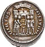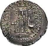 Siehe hierzu Hollstein, W., Die stadtrömische Münzprägung der Jahre 78-50 v. Chr. zwischen politischer Aktualität und Familienthematik, München 1993, S. 214 f. 3039Õ-Denar, 62 v. Chr., Rom, Paullus Lepidus und Scribonius Libo; 3,93 g. Concordiakopf r. mit Schleier und Diadem//Puteal Scribonianum, mit Girlanden und zwei Lyren geschmückt, an der Basis Hammer. Bab. 11; BMC 3383; Crawf. 417/1 a; Syd. 927.Sehr schön50,-Das Puteal Scribonianum steht auf dem Forum an der Stelle eines Blitzeinschlages. Hollstein postuliert, dass die Münzmeister dieser Gemeinschaftsprägung dem politischen Konzept der concordia ordinum des Cicero anhingen. Siehe Hollstein, W., Die stadtrömische Münzprägung der Jahre 78-50 v. Chr. zwischen politischer Aktualität und Familienthematik, München 1993, S. 216.