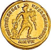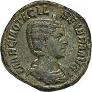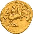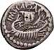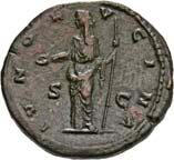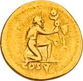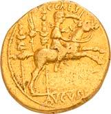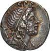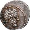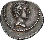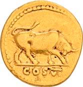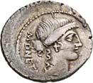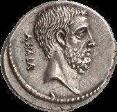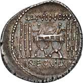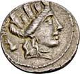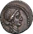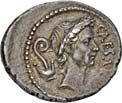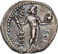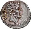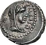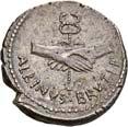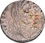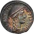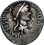 3041Õ-Denar, 56 v. Chr., Rom, L. Marcius Philippus; 3,94 g. Kopf des Ancus Marcius r. mit Diadem, dahinter Lituus//Reiterstatue r. auf Aquädukt, aus dem eine Blume wächst. Bab. 28; BMC 3890; Crawf. 425/1; Syd. 919.Winz. Kratzer, gutes sehr schön75,-Der abgebildete Aquädukt bezieht sich auf die aqua Marcia, deren Bau von Ancus Marcius beauftragt und unter Q. Marcius Rex um 140 v. Chr. vollendet wurde. Die Deutung des Reiterstandbild wird nach wie vor diskutiert: Gesche sieht in dem Reiter den Erbauer der Wasserleitung, H. Gesche, Die Reiterstatuen der Aemilier und Marcier, in: JNG 18 (1968), S. 25 ff.; Hollstein spricht sich für den Triumphator Q. Marcius Tremulus aus. So würde die Münze gleich drei herausragende Mitglieder der gens Marcia ehren, siehe Hollstein, W., Die stadtrömische Münzprägung der Jahre 78-50 v. Chr. zwischen politischer Aktualität und Familienthematik, S. 268 ff. 3042Õ-Denar, 56 v. Chr., Rom, Faustus Cornelius Sulla; 4,05 g. Drapierte Büste der Venus r. mit Lorbeerkranz und Diadem, über der Schulter Zepter//Drei Trophäen zwischen Capis und Lituus. Bab. 63; BMC 3909; Crawf. 426/3; Syd. 884.Kratzer auf dem Avers, sehr schön75,-Der Münzmeister war der Sohn des Diktators Sulla und der Schwiegersohn des Pompeius, zu dessen Legaten er beim Feldzug im östlichen Mittelmeer gehörte. Die drei Trophäen auf dem Revers entsprechen der Darstellung auf dem Siegelring des Pompeius (siehe Dio XLIII, 18, 3). Hollstein vermutet, dass die Prägereihe Crawf. 426 zur Finanzierung der cura annonae des Pompeius in Auftrag gegeben wurde und sich die Münzpaare 1-2 sowie 3-4 kreuzweise aufeinander beziehen. Siehe Hollstein, W., Die stadtrömische Münzprägung der Jahre 78-50 v. Chr. zwischen politischer Aktualität und Familienthematik, München 1993, S. 281 ff. und 293.