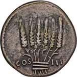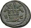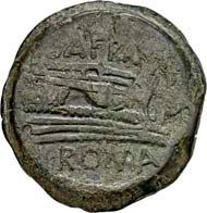 3011Æ-As, 150 v. Chr., Rom, Safra; 33,99 g. Januskopf, darüber I//Prora r., darüber Pilei der Dioscuren, davor I. Bab. 2; BMC 675; Crawf. 206/2; Syd. 389.Sehr schön50,-Safra ist höchstwahrscheinlich das cognomen des Münzmeisters, früher wurde es als S(purius) Afra gedeutet.