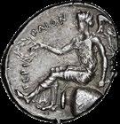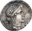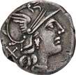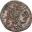 3023Õ-Denar, 109/108 v. Chr., Rom, Q. Lutatius Cerco; 3,93 g. Romakopf r. mit Helm, darauf Ähre und zwei Sterne, dahinter XVI (in Ligatur)//In Eichenkranz: Galeere r. Bab. 2; BMC 636; Crawf. 305/1; Syd. 559. Sehr schön60,-Der Revers erinnert an die Entscheidungsschlacht des 1. Punischen Krieges, den Seesieg des C. Lutatius Catulus über die Karthager bei den Aegatischen Inseln (die "Ziegeninseln" südwestlich von Sizilien).