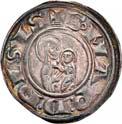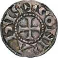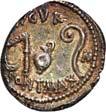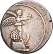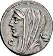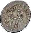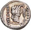 3031Õ-Denar, 84 v. Chr., Rom, P. Furius Crassipes; 3,89 g. Kybelekopf r. mit Mauerkrone, dahinter deformierter Fuß//Curulischer Stuhl. Bab. 20; BMC 2604; Crawf. 356/1 a; Syd. 735. Unbedeutender Prüfhieb am Rand, leicht dezentriert, fast vorzüglich75,-Der deformierte Fuß ist eine Anspielung auf den Beinamen des Münzmeisters.
