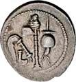 3036Õ-Denar, 69 v. Chr., Rom, P. Sulpicius Galba; 3,79 g. Vestakopf r. mit Schleier//Messer, Simpulum und Axt. Bab. 7; BMC 3517; Crawf. 406/1; Syd. 839.Feine Tönung, sehr schön60,-Der Münzmeister des vorliegenden Stückes war seit mindestens 69 v. Chr. Pontifex und stellt dies auf der Münze dar. In seiner späteren Laufbahn erreichte er schließlich die Prätur und wurde eventuell 47 von rebellierenden Soldaten Caesars ermordet. Siehe Hollstein, W., Die stadtrömische Münzprägung der Jahre 78-50 zwischen politischer Aktualität und Familienthematik, München 1993, S. 154 ff.