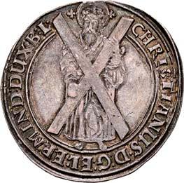 Thick quadruple Reichstaler 1617, Dresden, on the occasion of the 100th anniversary of the Reformation.