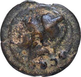 3007Æ-Triens, 225/217 v. Chr., Rom, anonym; 73,01 g. Minervakopf (oder unbärtiger Marskopf?) l. mit korinthischem Helm, darunter vier Wertkugeln//Prora r., darunter vier Wertkugeln. BMC 32; Crawf. 35/3 a; Syd. 74.Winz. Gußfehler auf dem Revers, fast sehr schön150,-3009 3008 3008
