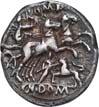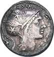 3019Õ-Denar (Serratus), 118 v. Chr., Narbo, L. Licinius Crassus und Cn. Domitius Ahenobarbus mit L. Pomponius; 3,98 g. Romakopf r. mit geflügeltem Helm, dahinter X//Krieger in Biga r. mit Schild, Speer und Carnyx. Bab. 7 (Pomponia); BMC 1191; Crawf. 282/4; Syd. 522.Feine Tönung, sehr schön60,--