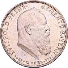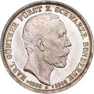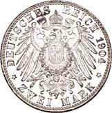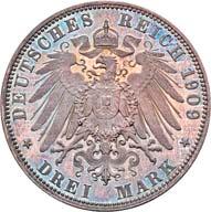 4120 Karl Günther, 1880-1909. 2 Mark 1905. Regierungsjubiläum. J. 169a.Polierte Platte (Proof)100,-41213 Mark 1909, mit Lebensdaten. J. 170.Hübsche Patina, polierte Platte (Proof)200,--