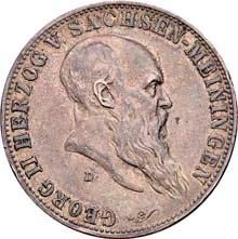 4115 Georg II., 1866-1914. 5 Mark 1901. 75. Geburtstag. J. 150.Hübsche Patina, sehr schön100,--