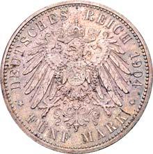 4096 Friedrich Franz IV., 1897-1918. 5 Mark 1904. Hochzeit. J. 87. Hübsche Patina, polierte Platte (Proof)200,-40975 Mark 1904. Hochzeit. J. 87.Feine Patina, polierte Platte (Proof)200,--