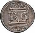 3038Õ-Denar, 62 v. Chr., Rom, L. Scribonius Libo; 3,78 g. Kopf des Bonus Eventus r.//Puteal Scribonianum, mit Girlanden und zwei Lyren geschmückt, an der Basis Hammer. Bab. 8; Banti 11; BMC 3377; Crawf. 416/1 a; Syd. 928.Feine Tönung, gutes sehr schön60,-Das Puteal steht auf dem Forum Romanum.