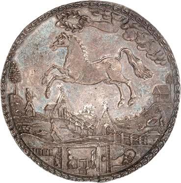 Sehr selten, besonders in dieser Erhaltung. Attraktives Exemplar mit hübscher Patina, winz. Kratzer im Feld der Vorderseite und im Rand, vorzüglich7.500,-Exemplar der Karsten B. Kold Collection.
