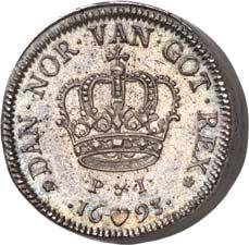45202 Kronen 1693, Kopenhagen. Dickstück, von den Stempeln des 1 Mark-Stücks; 35,80 g. Geharnischtes Brustbild r. mit Elefantenorden//Krone. Hede 105. Sehr selten, besonders in dieser Erhaltung. Sehr attraktives Exemplar mit hübscher Patina, vorzüglich-Stempelglanz6.000,-Exemplar der Karsten B. Kold Collection und der Slg. Helge Reff, Oslo Mynthandel 17, Oslo 1986, Nr. 730. 1,5:1 1,5:1