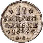 45182 Skilling 1686, Kopenhagen. 1,23 g. Hede 84. Von großer Seltenheit. Prachtexemplar. Hübsche Patina, fast Stempelglanz500,-Exemplar der Karsten B. Kold Collection.
