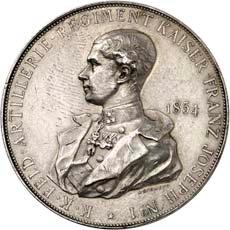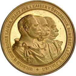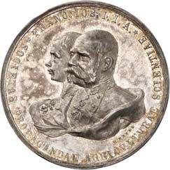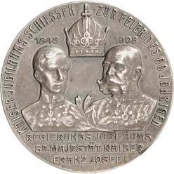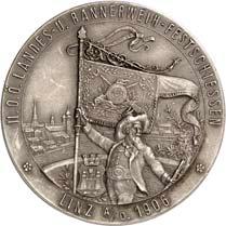 2167Kleine Serie von zwei Medaillen aus Zink und aus Zinn sowie einer Bronzeplakette aus dem habsburgisch-österreichischen Raum des 20. Jahrhunderts. Auf das 400jährige Jubiläum der Niederösterreichischen Landesstelle 1901 (Hauser 1857), auf den Besuch Wilhelms II. von Preußen im Wiener Rathaus 1910 (Hauser 1112) und auf die Hochzeit von Karl Franz Josef mit Zita von Bourbon-Parma 1911 (Hauser 480). 3 Stück. Vorzüglich75,--