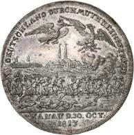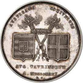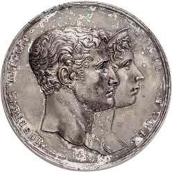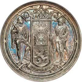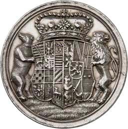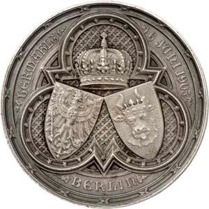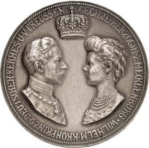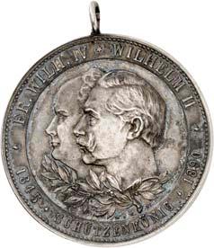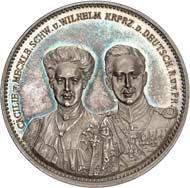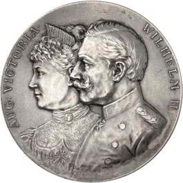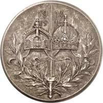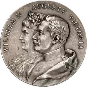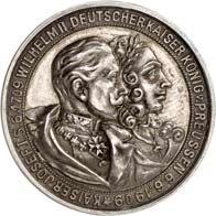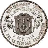 Silbermedaille 1914, von C. Drentwett, auf die Einnahme Antwerpens am 9. Oktober. Uniformierte Brustbilder von Wilhelm II. und Franz Joseph I. nebeneinander l.//Stadtwappen von Antwerpen zwischen Rollwerk. 33,35 mm; 14,41 g. Zetzmann 4037. Von großer Seltenheit. Vorzüglich-Stempelglanz125,--