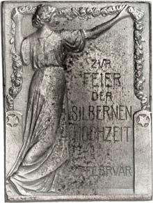 2113Einseitige Bronzeplakette 1911, auf die vier Generationen des Hauses Wittelsbach. Die Brustbilder von Luitpold, Ludwig, Ruprecht und Luitpold nebeneinander r., unten r. mit Rosen geschmücktes Wappen. 76,10 x 50,66 mm; 79,29 g. Kienast 14.Vorzüglich75,--