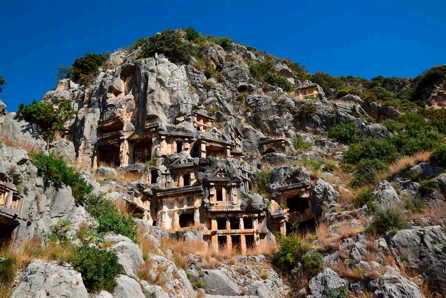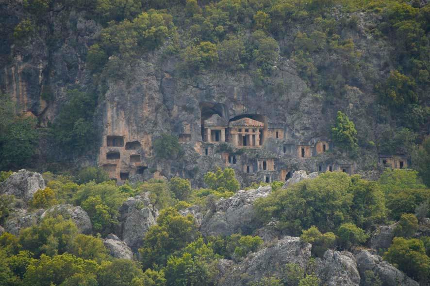 Lycia is the westernmost and also the most fascinating landscape of southern Asia Minor. It is a peninsula that extends into the eastern Mediterranean and is framed by the Lycian Sea to the west and the Pamphylian Sea to the east. From the Taurus Mountains, which stretch out from west to east, three mountain ranges rising to over 3000 meters in height protrude southwards into the Lycian Peninsula: the Kragos Mountains (Baba Da ) in the west, the double-stranded chain of the Massikytos Mountains (Ak Da lar and Bey Da lar ) in the center and the Solymos Mountains (Tahtal Da massif) in the west. These mountain chains are intersected by four river valleys extending in a north-south direction: the largest of these valleys is that of the river Xanthos (Esen Çay) in the west. In the center, the Myros (Demre Çay ) and the Arykandos (Ba göz Çay) cut into the Massikytos massif. To the east flow the Alakir Çay, whose ancient name is still unknown, and the Limyros (Göksu). From a geographical point of view, Lycia can appropriately be described as the Switzerland of Turkey. Lycia is just as mountainous and equally fragmented into very different, separate regions as Switzerland. The only difference is that it is surrounded by the sea on three sides, which makes Lycia a serious competitor to Switzerland in terms of beauty.