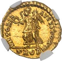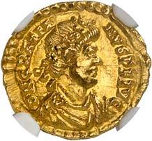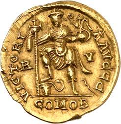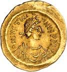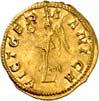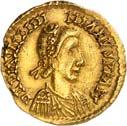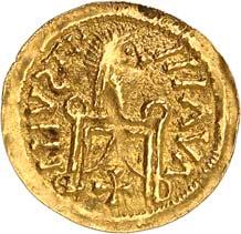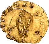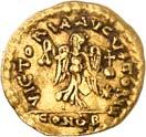 1009 Anonym. Ô-Tremissis, Narbonne (?); Drapierte Büste r. mit Diadem//Victoria geht r. mit Kranz und Palmzweig. Boutin, Collection N. K. 1069; Tomasini JAN 1. Attraktives Exemplar. Feine Goldtönung, Schrötlingsrisse und Kratzer, gutes sehr schön400,-Exemplar der Sammlung Nadia Kapamadji (1901-1978), Auktion Bourgey, Paris 27.-29. Oktober 1992, Nr. 683 und der Sammlung Bernard Chwartz, Auktion Alde, Paris 14. Juni 2010, Nr. 180.