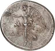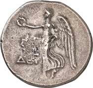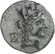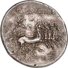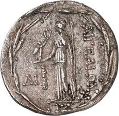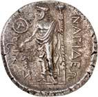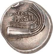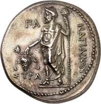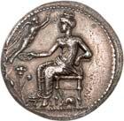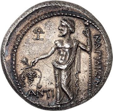 The elimination of Lycian dynasts and the destruction of the Persian Empire by Alexander the Great almost 30 years later led to the gradual establishment of the Greek polis system in Lycia and the emergence of cities, whose structure followed the Greek model. However, Lycia did not remain free of overlords. From 309 to 197 BC, the country was ruled by the Egyptian Ptolemies. Antiochus the Great conquered Lycia in 197 BC, but his rule was only an interlude. When the Romans defeated him at the Battle of Magnesia at Sipylos in 190 BC, he was forced to cede Lycia to the Romans' ally Rhodes. However, the new rulers were highly unpopular with the Lycian population and Lycian cities began to unite in resistance against Rhodes. Since Rhodes had become increasingly powerful, with Rhodian merchants standing in the way of the economic interests of Roman merchants, Rome took advantage of the conflicts in Lycia to declare Lycia free in 167 BC (Behrwald 2000, 105 ff.). At that time, the Lycian League was formed to protect the country from foreign domination and to maintain peace at home. After a period of more than one and a half centuries during which Lycians had not minted their own coins, they now began to produce federal coins. These pieces were modelled after Rhodian plinthophores, but bore the head of Apollo on the obverse and Apollo's kithara in a rectangular recessed area (gr. plinthos) on the reverse, flanked by legends that identified the Lycians, the regions of Kragos and Masikytos and, for a shorter period, Phaselis and Olympos as minting authorities (Troxell 1982; Behrwald 2000, 107). When Lycia became a Roman province in AD 43, the Lycian League was transformed into a provincial council, which was primarily responsible for the imperial cult and the support of the Roman administration. It was not until Gordian III that Lycian cities minted their own coins again.