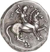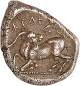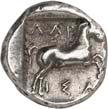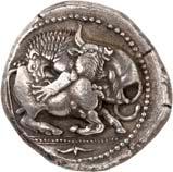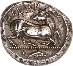 9Õ-Stater, 500/480 v. Chr., unbestimmte Münzstätte; 8,19 g. Eberprotome l.//Grobes Incusum mit zwei gekreuzten Linien. Müseler II, 2 (dies Exemplar).Gutes sehr schön 300,-Exemplar der Auktion Monetarium SKA 36, Zürich 1981, Nr. 63, der Auktion Monetarium SKA 39, Zürich 1983, Nr. 37 und der Sammlung Amadeus, Auktion Giessener Münzhandlung 100, München 1999, Nr. 184.