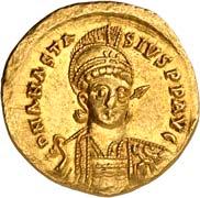 RR Prägeschwächen, winz. Kratzer, sonst vorzüglich1.500,-Am 3. Juni 713 wurde Philippicus von Anhängern des Anastasius II. geblendet und ins Exil geschickt. Am folgenden Tag bestieg Anastasius II. den Thron. Zwei an der Absetzung des Philippicus maßgeblich beteiligte Männer, Theodoros Myaces und Georgios Bouraphus, ließ der neue Kaiser kurz darauf ebenfalls blenden und ins Exil schicken. Anastasius II. verstärkte die Befestigungen der Hauptstadt und ging gegen die Bedrohung durch die Araber vor. Die Soldaten einer von ihm in Rhodos stationierten Flotte rebellierten schließlich und zwangen ihn 715 zur Abdankung. 719 versuchte er mit bulgarischer Unterstützung vergeblich, die Macht zurückzugewinnen, und wurde enthauptet.