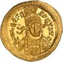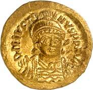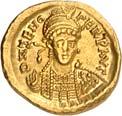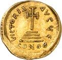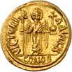 Iustinianus I., 527-565. Ô-Semissis, Constantinopolis; 2,03 g. Drapierte Büste r. mit Diadem// Victoria sitzt r. mit Schild, davor Christogramm. DOC 17; Sear 143. Kl. Kratzer auf dem Revers, kl. Prüfstellen am Rand, gutes sehr schön/sehr schön100,-1022Ô-Solidus, 527/538, Constantinopolis, 10. Offizin; 4,40 g. Gepanzerte Büste fast v. v. mit Helm, Speer und Schild//Engel steht v. v. mit Kreuzstab und Kreuzglobus. DOC 3 i; Sear 137. Sehr schön/fast vorzüglich200,-- Exemplar der Auktion Giessener Münzhandlung 81, München 1997, Nr. 915.