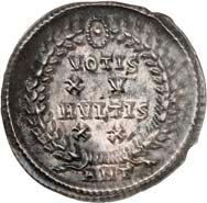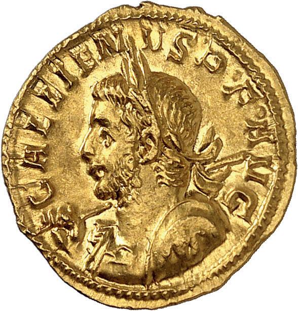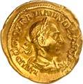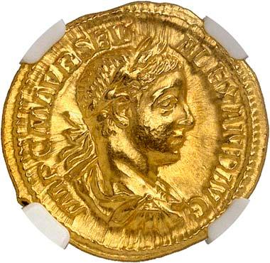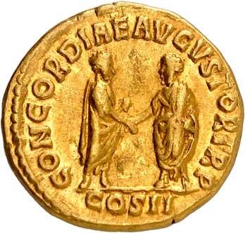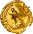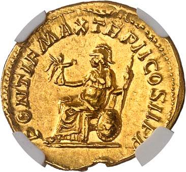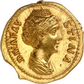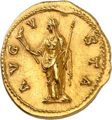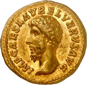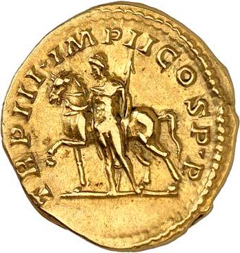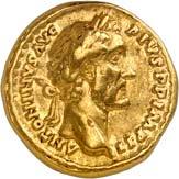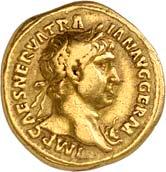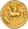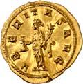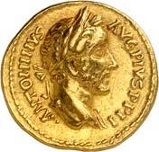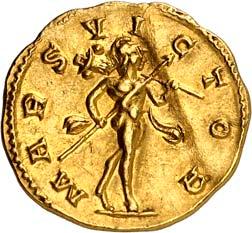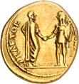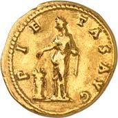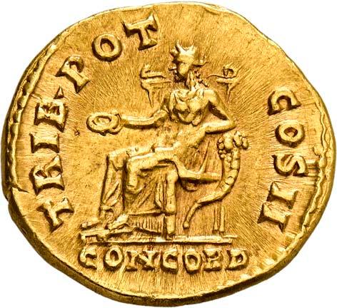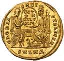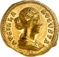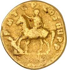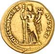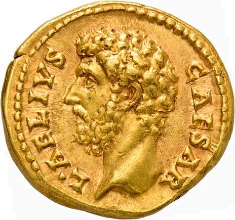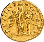 1005 Römisches Edelmetall: Das Lot enthält Münzen der Republik und Kaiserzeit in Silber und Gold. An Denaren bzw. Serrati sind vertreten Crawf. Nr. 219/1 e; 318/1 b; 379/2; 383/1; 392/1 b und RIC 521 (Domitian); 959 (Hadrian, 2. Auflage); 2725 (Antoninus I. Pius unter Hadrian, 2. Auflage) und der Denar des Septimius Severus, RIC Nr. 417, mit der besonderen Reverslegende (Haken am "F"). Beigefügt haben wir einen Solidus des Valentinian aus der Münzstätte Nicomedia, RIC 2 b, der auf dem Revers eine bearbeitete Henkelspur aufweist, sonst aber von sehr schöner Qualität ist. 10 Stück. Ein Stück mit Henkelspur, sonst meist sehr schön 400,--
