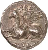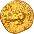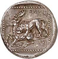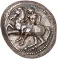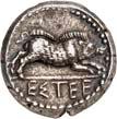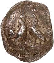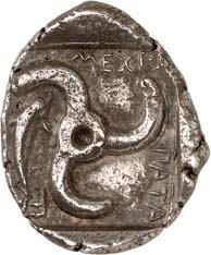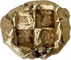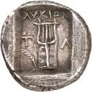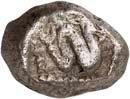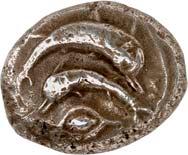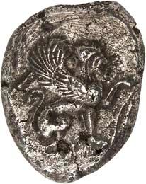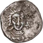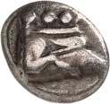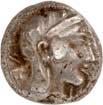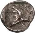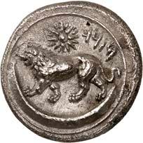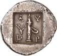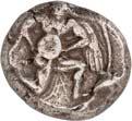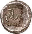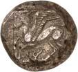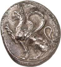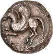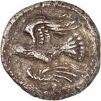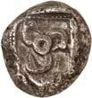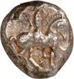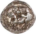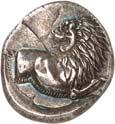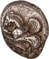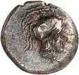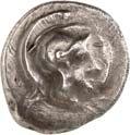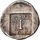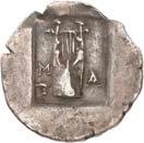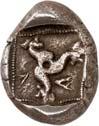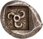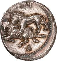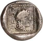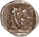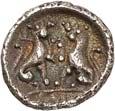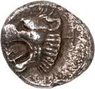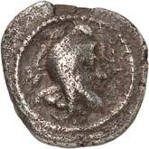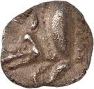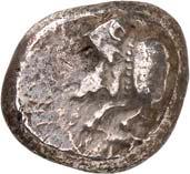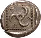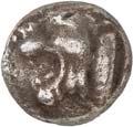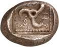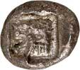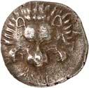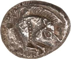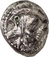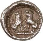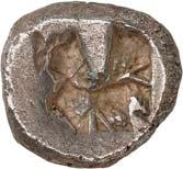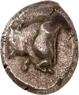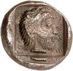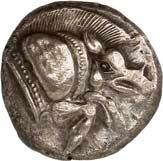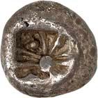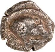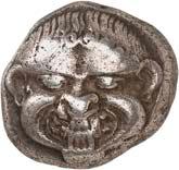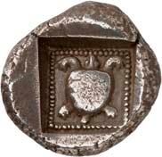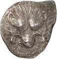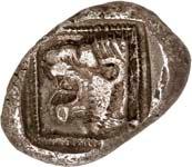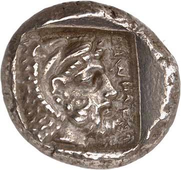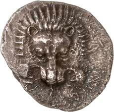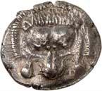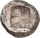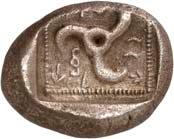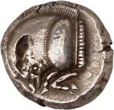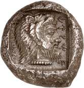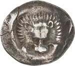 1 Unbestimmter Dynast. Õ-Stater, um 500 v. Chr., unbestimmte Münzstätte; 8,98 g. Löwenkopf r.//Zwölffach geteiltes Incusum. Müseler I,1 (dies Exemplar); SNG v. Aulock 4041 (dies Exemplar). R Herrliche Patina, fast vorzüglich/vorzüglich500,-Exemplar der Sammlung Hans von Aulock und der Auktion Leu Numismatik 65, Zürich 1996, Nr. 220.