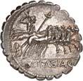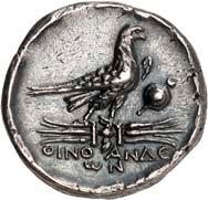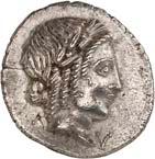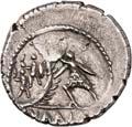 1004 Denare der Republik (3): Im Lot sind acht verschiedene Magistraten der römischen Republik sowie die Imperatoren Marcus Antonius und Julius Caesar mit je einem Stück vertreten: Mn. Acilius Balbus (3,89 g, Crawf. 271/1); L. Flaminius Chilo (3,83 g, Crawf. 302/1); Q. Titius (4,18 g, Crawf. 341/2); Cn. Cornelius Lentulus (4,07 g, Crawf. 345/1); C. Annius und L. Fabius Hispaniensis (3,88 g, Crawf. 366/1 c); L. Scribonius Libo (3,71 g, Crawf. 416/1 b); C. Julius Caesar (3,93 g, Crawf. 443/1); L. Plautius Plancus (3,31 g, Crawf. 453/1 a); C. Considius Paetus (3,85 g, Crawf. 465/1 a); M. Antonius (3,42 g, Crawf. 544/18). 10 Stück. Sehr schön und besser750,-Exemplare der Sammlung Lottie und Mark Salton, eLive Premium Auction Fritz Rudolf Künker 378, Osnabrück 2022, Nr. 6893 (Lot).